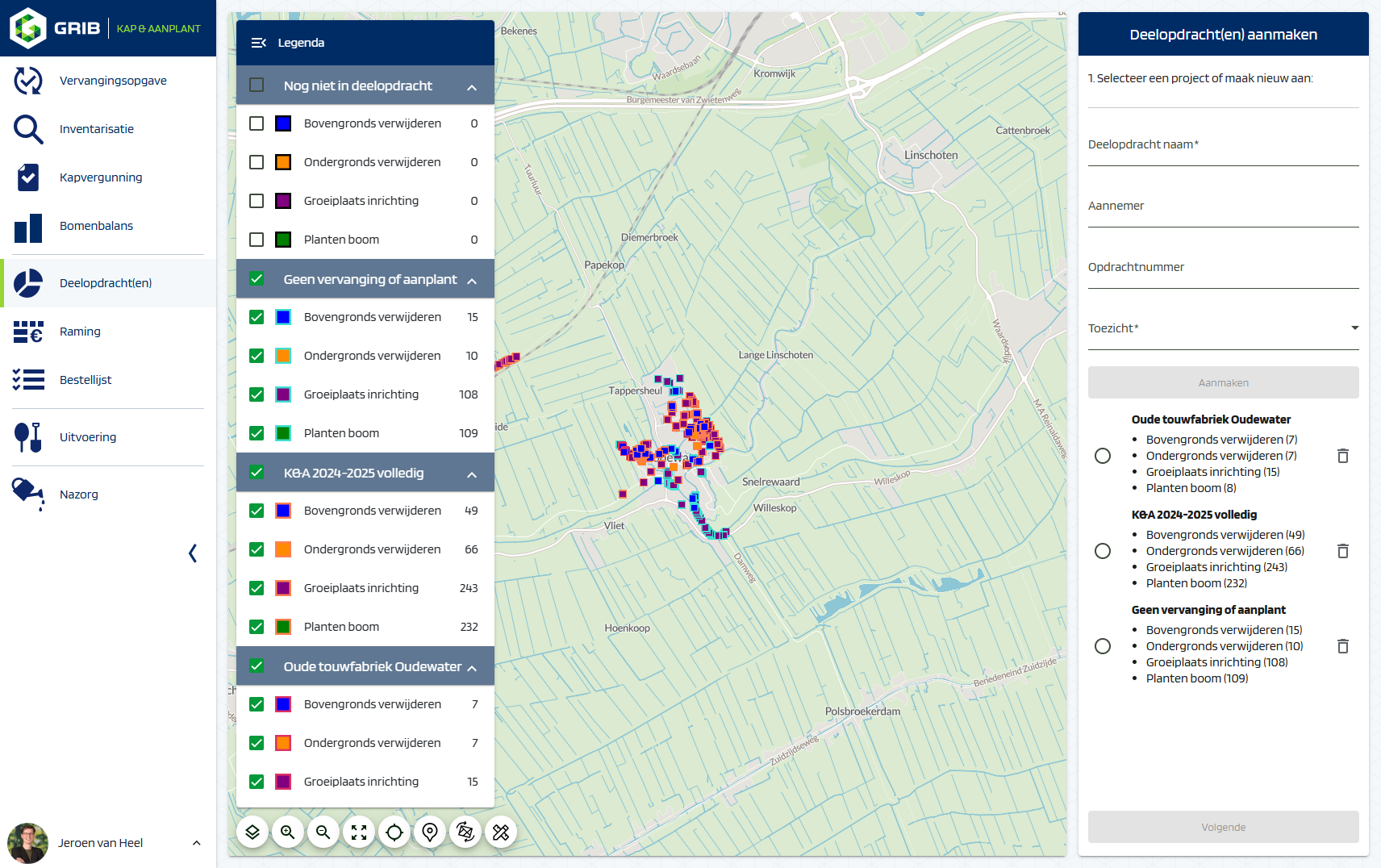 Met GRIB Kap & Aanplant wordt de vervangingsopgave van het gehele areaal in één oogopslag inzichtelijk gemaakt. Daarnaast wordt het gehele proces van het kappen van een boom tot het aanplanten van een nieuwe boom gefaciliteerd in één gebruiksvriendelijke module.